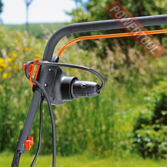 - Большие колеса с профильным рисунком облегчают управление и обеспечивают хорошее сцепление с поверхностью газона.