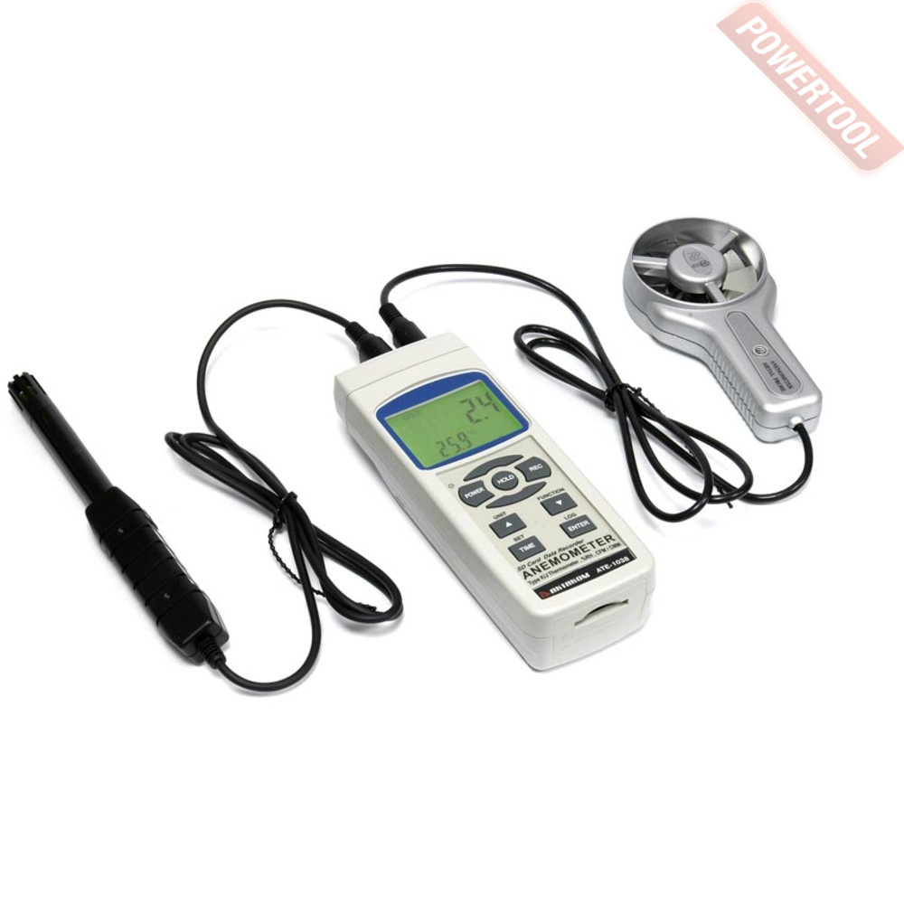 Термоанемометр с крыльчаткой с сохранением данных на SD-карту в реальном времени, диапазон измерений скорости 0,4-30 м/с, погрешность 2 процента плюс 0,2 м/с, разрешение 0,1 м/с, измерение температуры при помощи термопар К и J типа от -100 до 1300 градусов С, диапазон измерений температуры воздушного потока от 0 до 80 градусов С, диапазон измерения объема воздушного потока 0-63000 куб.м/мин, измерение относительной влажности воздуха 5-95 процентов ОВ, диапазон измерений температуры окружающей среды от 0 до 50 градусов С, точка росы, температура смоченного термометра, время измерения 1 сек, индикация минимального и максимального значений, функция удержания данных HOLD, память 100 значений, сохранение на SD-карту в реальном времени в формате Excel, RS232-интерфейс с возможностью подключения к ПК через порт USB с помощью преобразователя интерфейса, ПО для обработки результатов, выбор единиц измерения СИ/USCS, ЖК-дисплей с подсветкой, питание от 6 батарей 1,5 В тип АА, настраиваемое автоотключение, вес 0,347 кг, футляр.