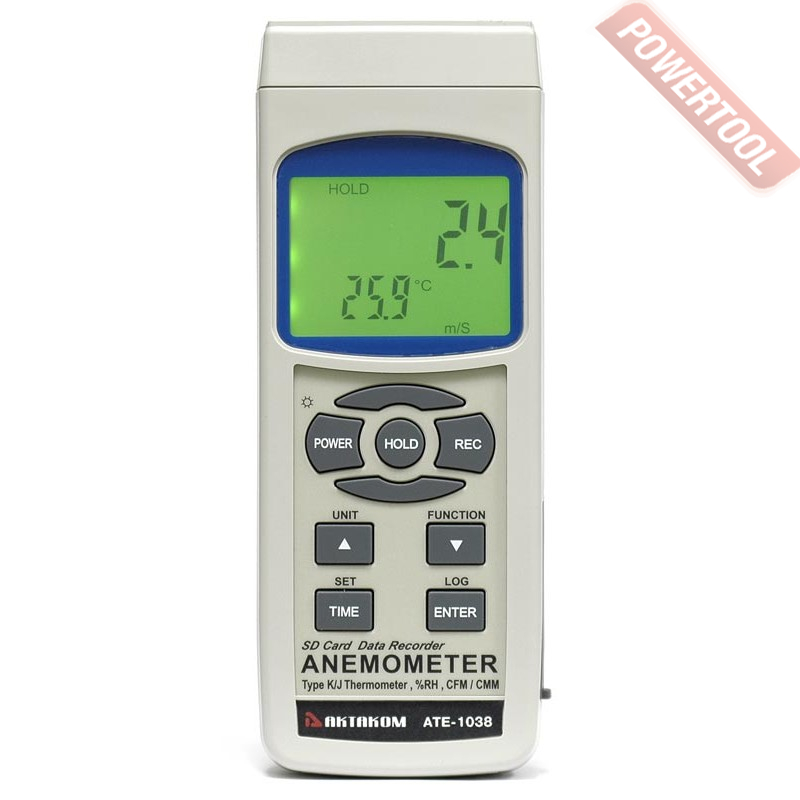 Анемометр-регистратор с крыльчаткой АКТАКОМ АТЕ-1038 - комбинированный прибор для измерения температуры и относительной влажности окружающей среды, температуры контактным методом при помощи термопар. Прибор позволяет вычислять объем проходящего через крыльчатку воздуха, а внешний датчик влажности делает возможным вычисления точки росы и температуры смоченного термометра. Главная особенность прибора - патентованная технология записи данных на SD-карту в режиме реального времени БЕЗ использования специального программного обеспечения.
