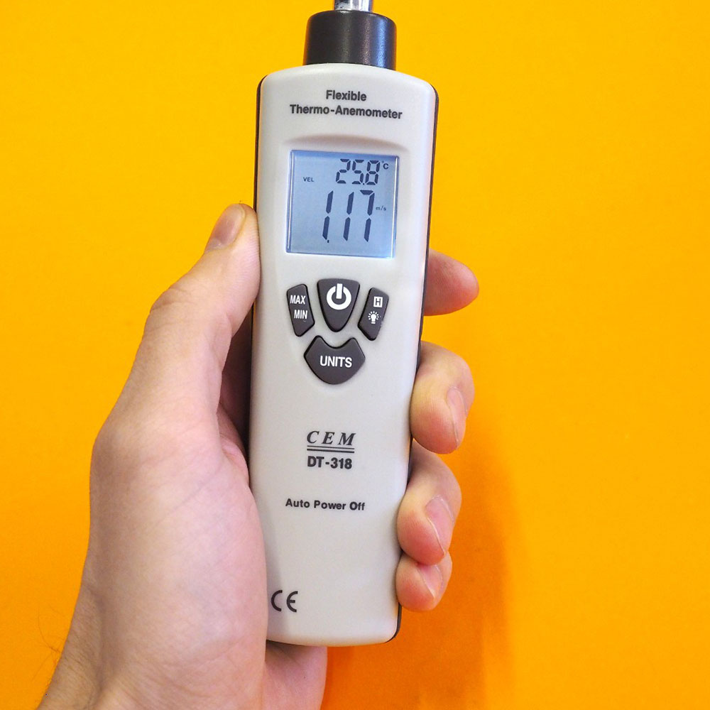 Анемометр с термодатчиком и гибким зондом CEM DT-318 предназначен для измерения скорости потока и температуры воздуха. Прибор применяется для измерения скорости движения газов, воздуха в системах, например, вентиляции. В метеорологии применяется для измерения скорости ветра. Благодаря встроенной крыльчатке прибор идеально подходит для быстрых точечных замеров на выходах воздуховодов. Также возможен расчет среднего значения измерений. Очень удобный, компактный и легкий в управлении прибор.