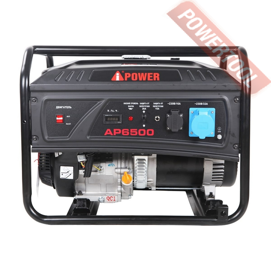 Бензиновый генератор A-iPower Lite AP6500 - доступный, надежный и относительно компактный источник энергии, номинальная мощность которого составляет 6 кВт. Модель оборудована силовой розеткой, необходимой для снятия полной мощности и питания высоконагруженных потребителей.