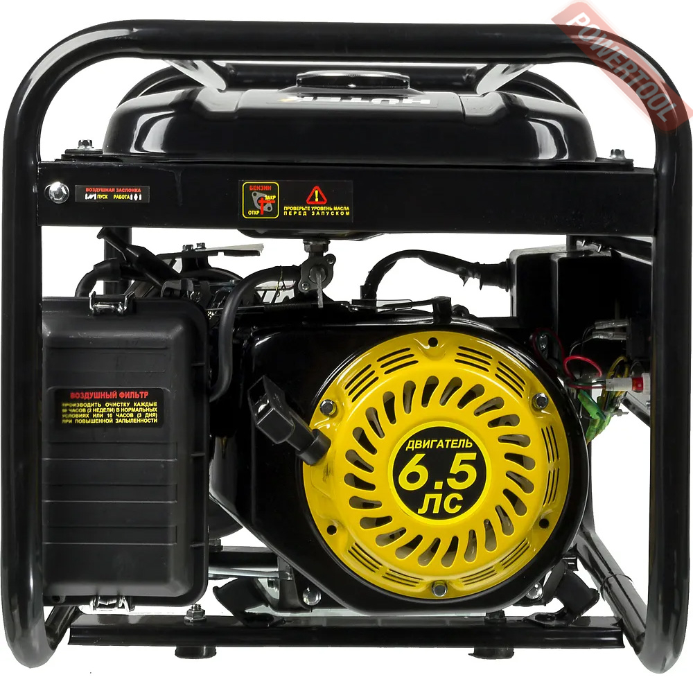 - Мощный двигатель работает на бензине с экономным расходом топлива, что гарантирует длительное время автономной работы. Мотор отвечает за преобразование механической энергии в электрическую для получения качественного электричества.