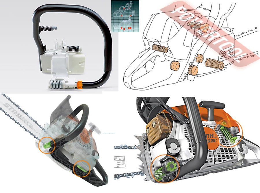 • Антивибрационная система. Сильная вибрация в зоне рукояток может привести к хроническим нарушениям кровообращения в руках. Поэтому компания STIHL разработала высокоэффективную антивибрационную систему (АС). У инструментов с АС вибрация двигателя передающаяся на рукоятки заметно снижается