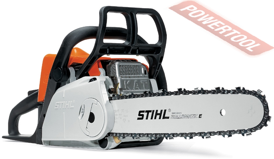 Бензопила цепная любительского класса, двигатель 31,8 куб.см мощностью 2 л.с., скорость холстого хода 2800 об/мин, допустимая длина шины 12-16 дюймов, стартер с дополнительной пружиной, комбинированное управление дроссельной заслонкой и остановкой двигателя, компенсатор, маслянный насос c регулируемым потоком, инерционный тормоз цепи, антивибрационная система, СИСТЕМА НАТЯЖЕНИЯ ЦЕПИ БЕЗ ИНСТРУМЕНТА, объем топливного бака 0,25 л, объем маслянного бака 0,145 л, вес 3,9 кг, шина 14 дюймов, шаг цепи 3/8 дюйма и толщна звена 1,3 мм, зубчатый упор, универсальный ключ.