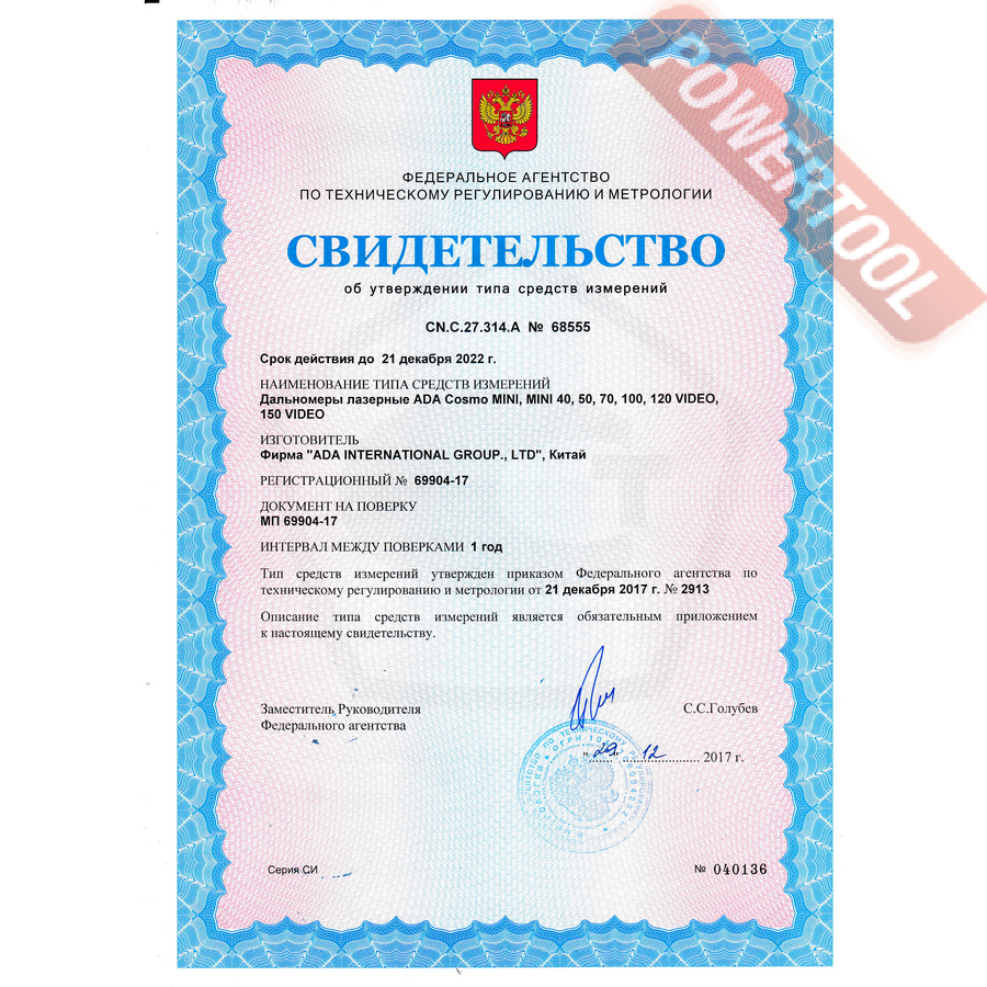 Дальномер лазерный ADA Cosmo Mini с поверкой очень прост в управлении, так как имеет всего 3 кнопки - включение/измерение/непрерывный режим измерения, замер площади/объема, отмена/выключение. Прибор подходит для работы как в помещении, так и на улице. Резиновые протекторные накладки обеспечивают надежное удержание дальномера. Данная модель прошла процедуру поверки, о чем информирует свидетельство, входящее в комплект.