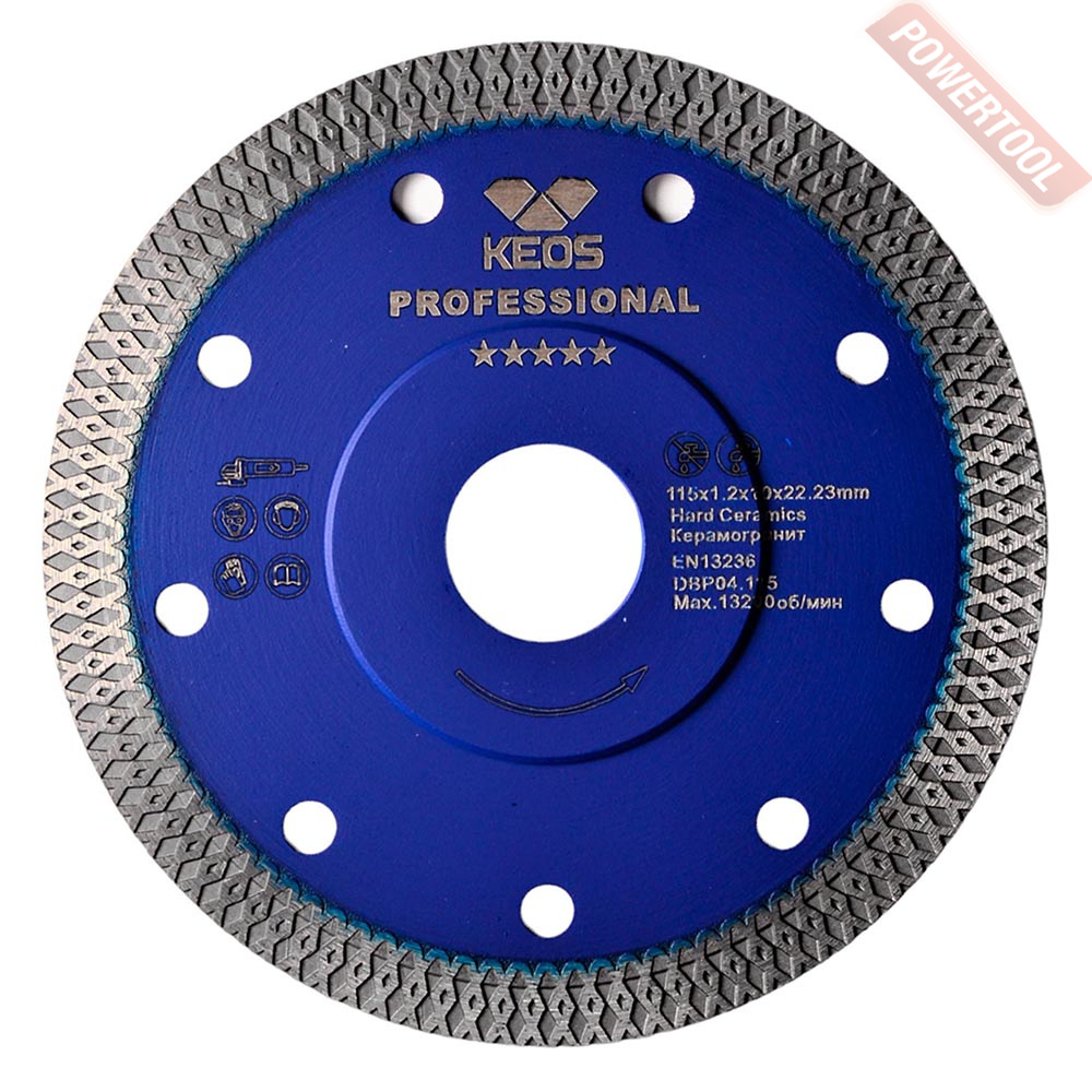 Диск алмазный сплошной по керамике для УШМ, диаметр 230 мм, посадочное отверстие 22,23 мм, толщина сегмента диска 2 мм, высота алмазного слоя 10 мм, тип алмазного слоя сплошной или корона, мокрый и сухой рез, подходит для резки по керамике и керамограниту. Диск с высокой скоростью резки и средним сроком службы. Возобновляемый алмазный слой с помощью бруска артикул 395B.