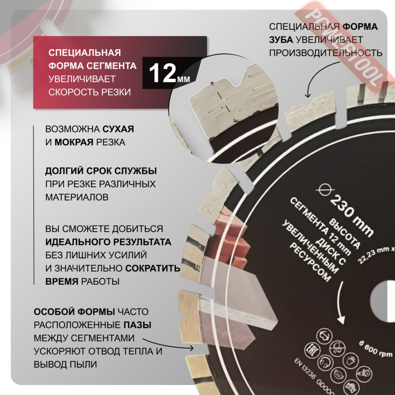 Диск алмазный по бетону 230х22,23 мм GOLDEN DRAGON GD0002230