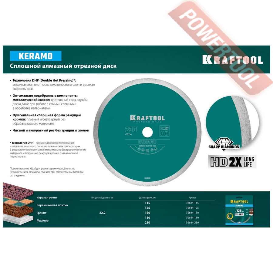 Диск алмазный по керамограниту 180х22,23 мм KRAFTOOL Keramo арт.36684-180