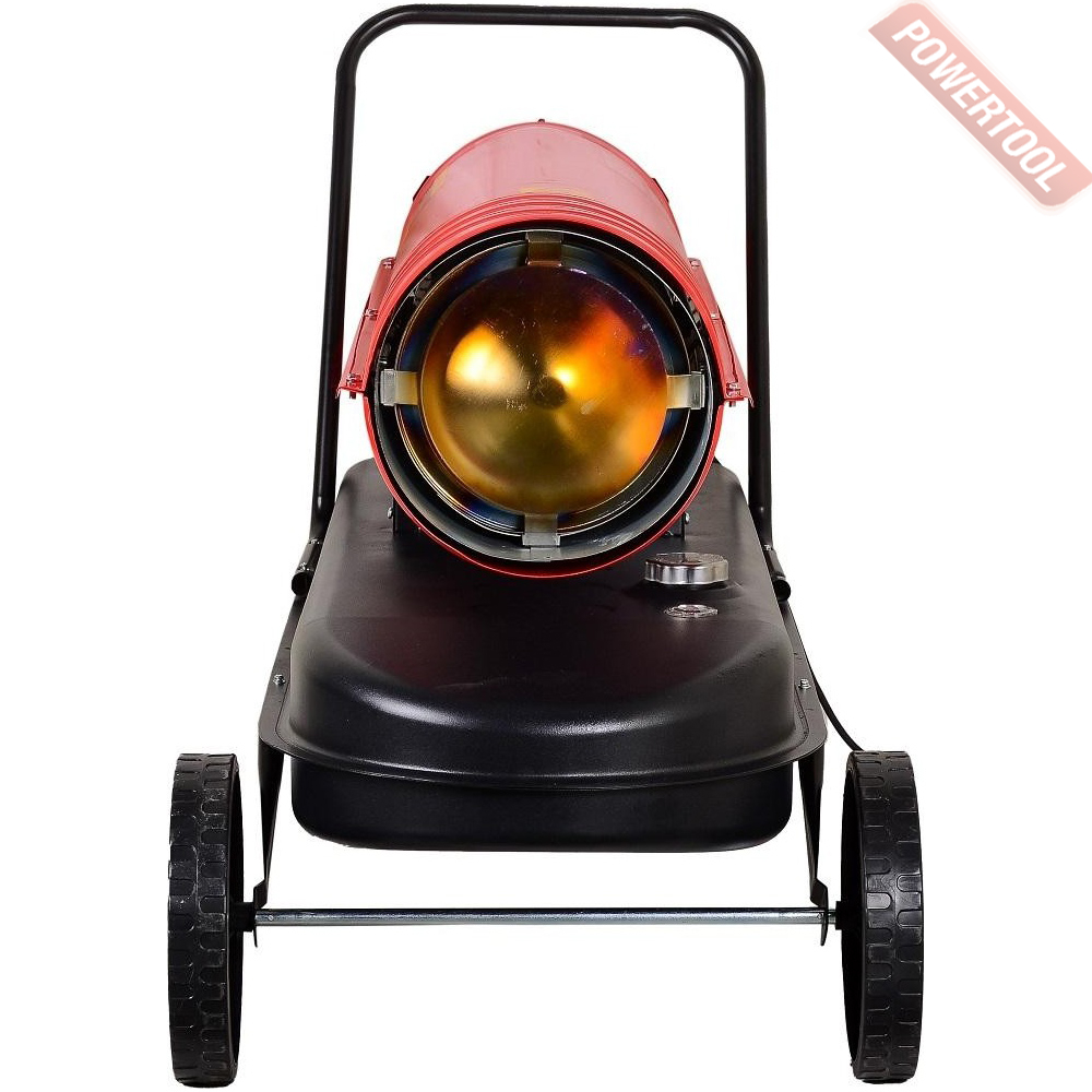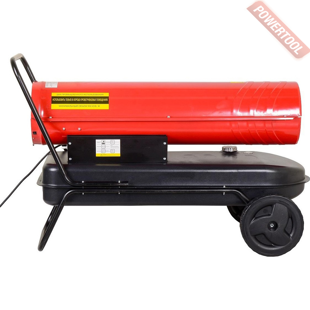 Дизельная тепловая пушка прямого нагрева, напряжение сети 220 В, тепловая мощность 50 кВт, расход воздуха 1500 куб.м/ч, расход топлива 3,96 кг/ч, объем топливного бака 56 л, встроенный термостат, контроль пламени, датчик перегрева, датчик уровня топлива, время автономной работы до 14 ч, габариты ДхШхВ 880х465х590 мм, вес 26,95 кг, тележечный комплект.