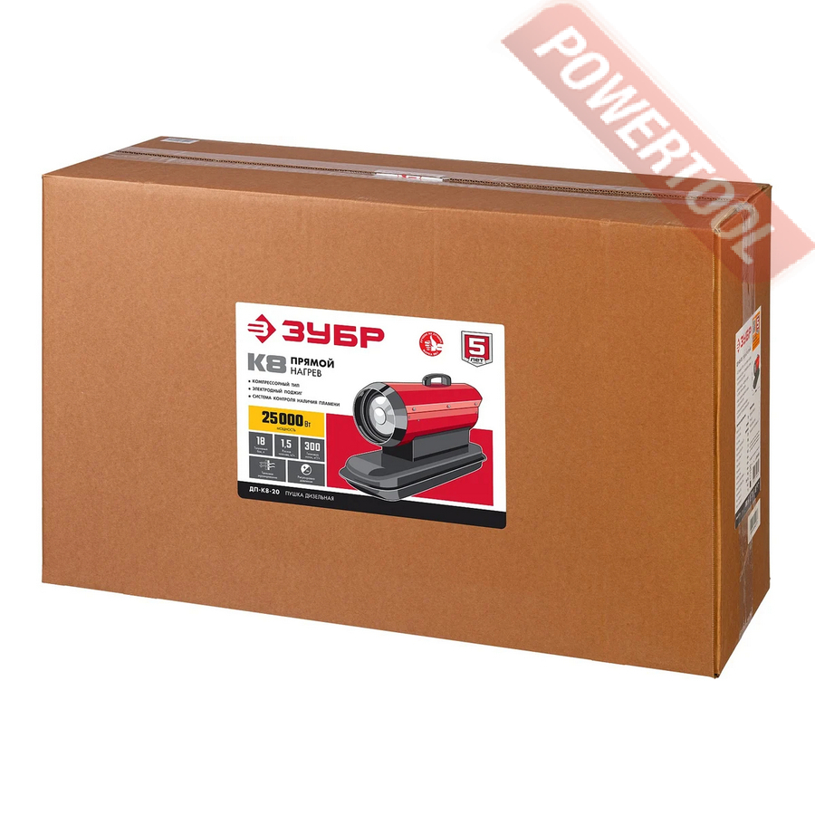 - 1. Дизельная тепловая пушка прямого нагрева ЗУБР ДП-К8-25.
