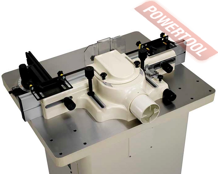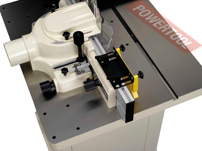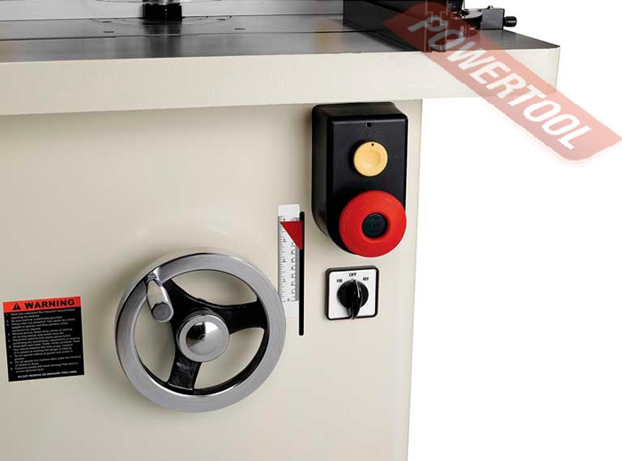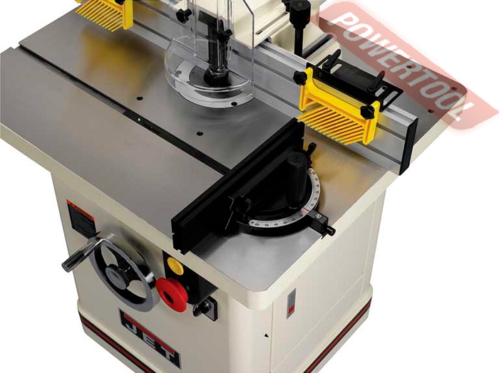 Фрезерный станок по дереву JET JWS-35 - мощный профессиональный фрезерный станок с массивным чугунным столом, предназначенный для работы в частной столярной мастерской или на производстве. Изначально адаптирован для установки устройства автоподачи, крепежные отверстия предусмотрены в столе. Конструкция со съёмным шпинделем значительно расширяет сферу применения. В стандартную комплектацию входят два цанговых зажима для концевых фрез с хвостовиками 8 и 12 мм, в качестве опций доступны на 1\2 и 1\4 дюйма. Фрезерный упор имеет усовершенствованную конструкцию с увеличенными накладками из алюминиевого профиля. Для регулировки его сдвигают целиком, ослабив два фиксатора. Винтовой механизм с миллиметровой шкалой позволяет отдельно настраивать положение задней накладки (величиной выступа регулируют глубину съёма). В качестве верхних прижимов заготовки используются пластиковые «гребёнки», в том числе страхующие от обратного выброса. В рабочем столе предусмотрен Т-образный паз для установки подвижного упора, он входит в штатную комплектацию. Дополнительно можно приобрести подвижный чугунный стол с увеличенным упором, который служит упрощенной альтернативой каретке и способен её заменить при небольших объёмах работ.