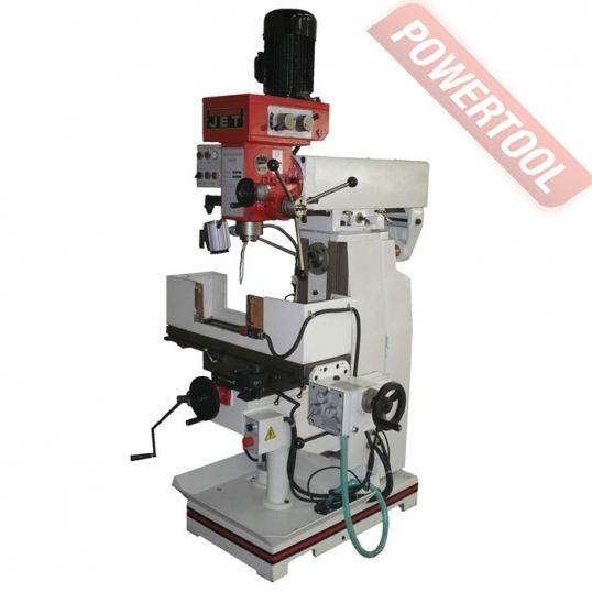 Широкоуниверсальный фрезерный станок по металлу JET JMD-939 GH востребован в многопрофильных мастерских и ремонтных подразделениях, автотюнинговых ателье, конструкторских бюро и т.д. Максимальный диаметр концевой фрезы у данной модели 100 мм, концевой - 25 мм, максимальный диаметр сверления - 30 мм. Фрезерная головка имеет механизм наклона на +/-90 градусов. Предусмотрен поворот стола +/-30 градусов. Станок оборудован системой автоподачи стола по оси Х с регулируемой скоростью от 24 до 720 мм/сек, а также и его ускоренным перемещением со скоростью 1083 мм/мин. Поставляется в расширенной комплектации, включая систему подвода СОЖ, лампу освещения рабочей зоны, зажимную тягу, цанговый патрон с набором цанг, оправку шпинделя, фрезерные тиски, 16 мм сверлильный патрон и многое другое.