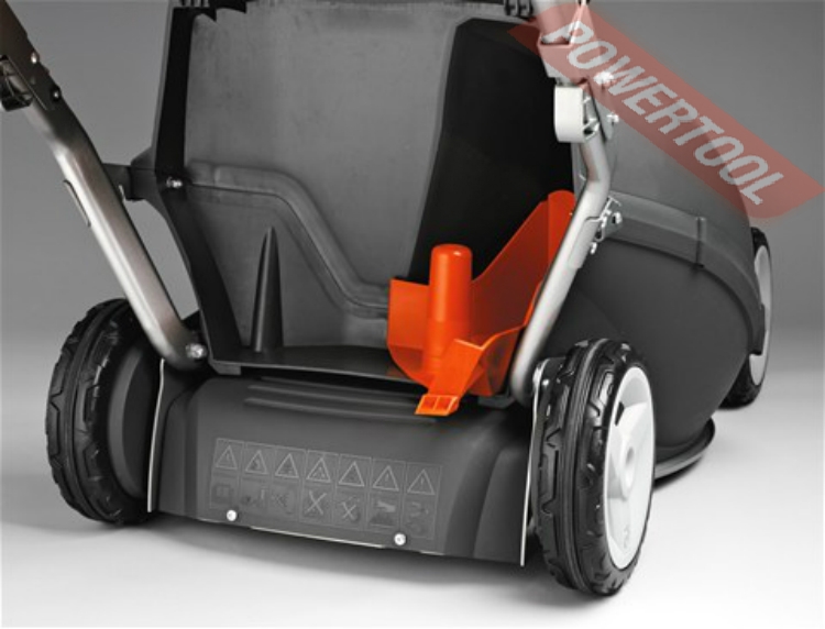- Бампер из нержавеющей стали. Износостойкий бампер из нержавеющей стали защищает переднюю часть газонокосилки