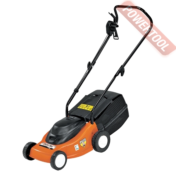 Газонокосилка электрическая несамоходная, 900 Вт, корпус ударопрочный пластик ABS, ширина скашивания 33 см, ручная раздельная регулировка высоты скашивания 3 позиции 20-36-52 мм, колеса на втулках, сбор травы в жесткий травосборник 25 л, вес 11,3 кг.