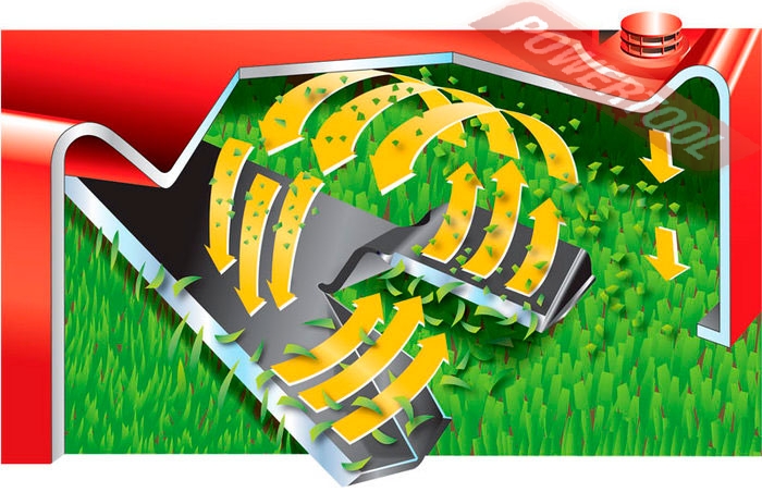 - Возможность использования опций: мульчирующая заглушка, вычёсыватель травы, односекционный травосборник, прицепные газонные ролики, нож-отвал для снега.