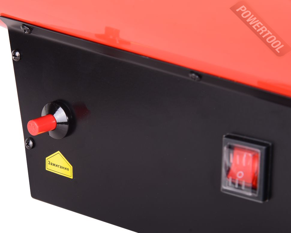 - Нагнетательный осевой вентилятор. Он создает воздушный поток, который выходит через рабочее сопло уже нагретый в теплообменнике прямого типа. Работает от сети 220 В потребляя немного энергии. Электродвигатель вентилятора имеет защиту от перегрева и скачков напряжения сети.