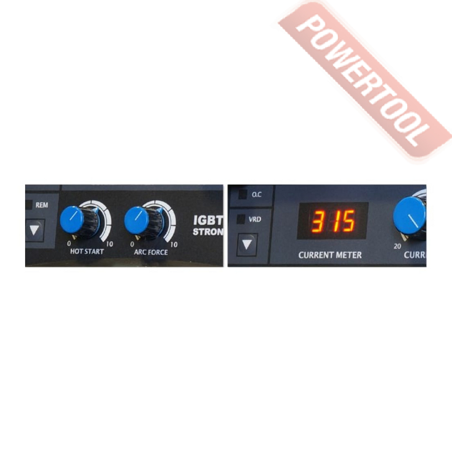 - Широкий диапазон регулировки сварочного тока от 40А для работы с тонкими материалами до 315А для полноценной работы электродом любых толщин.
