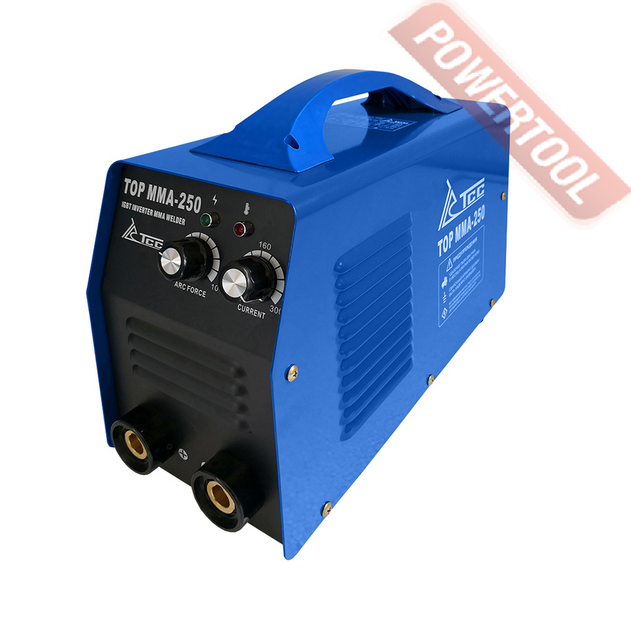 Инвертор MMA сварочный ТСС TOP MMA-250 предназначен для ручной дуговой сварки и наплавки штучным электродом на постоянном токе. Аппарат произведен на базе современной инверторной технологии c использованием мощных IGBT транзисторов, по принципу широтно-импульсной модуляции (PWM). Он отличается стабильной, надежной продолжительной и эффективной работой, портативностью и низким уровнем шума в процессе сварки.