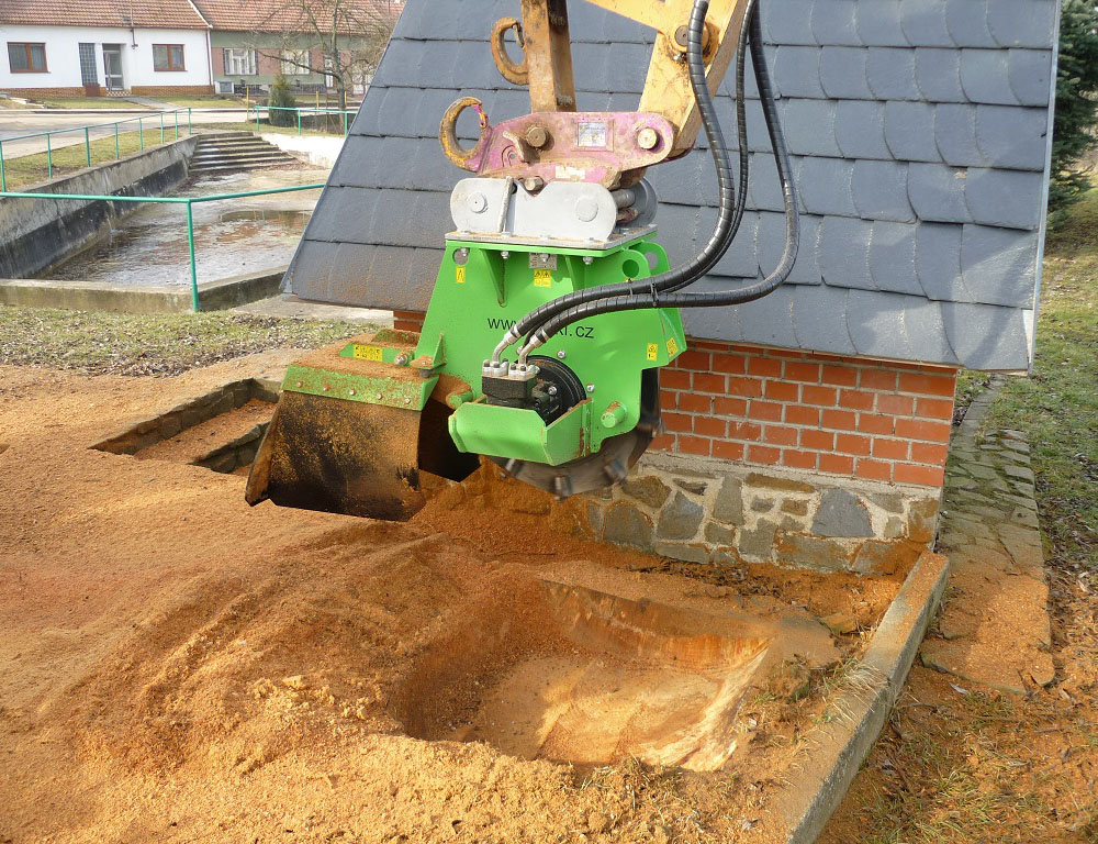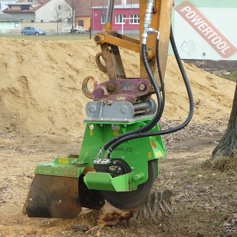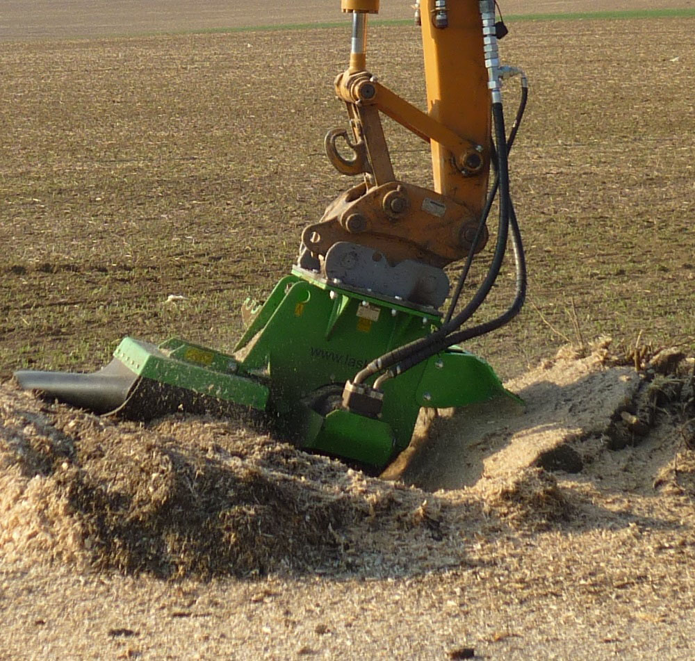 Измельчитель пней навесной LASKI FZ 700 H - данная машина служит для измельчения пней, т.е. той части которая находится выше уровня земли. Диаметр пня - без ограничений. Измельчитель предназначен для подвески на гидравлическую приводную на стрелу строительных машин, снабженных зажимным механизмом. Измельчающий диск должен располагаться вертикально или под углом 25 градусов.