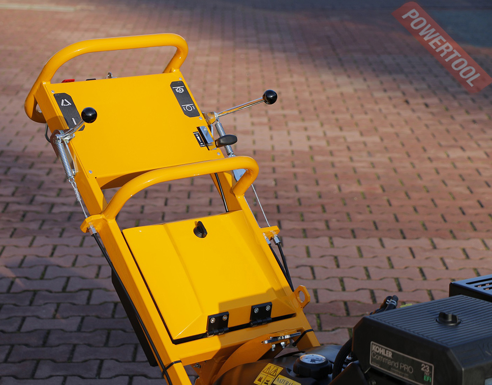 - Тормоз фрезы. Режущий орган снабжен тормозом, позволяющим остановить фрезу в течение 4 сек после того как оператор отпустит рычаг управления.