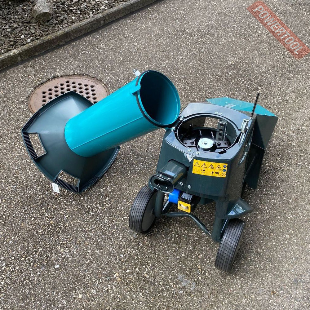 Измельчитель садовый электрический, 2100 Вт, 220 Вт, измельчение веток до 40 мм, загрузочная воронка 190 мм, два загрузочных отверстия верхнее и боковое, рабочий орган 4 ножа, производительность 280 кг/ч, полностью металлический корпус, подставка на колесах, отражатель на выходе, размеры 1020х540х1340 мм, вес 48 кг.