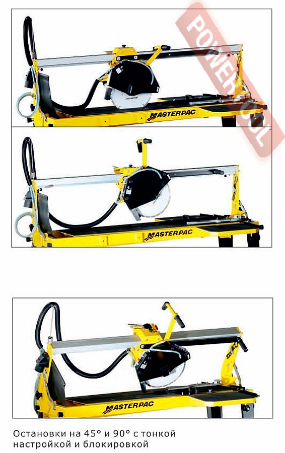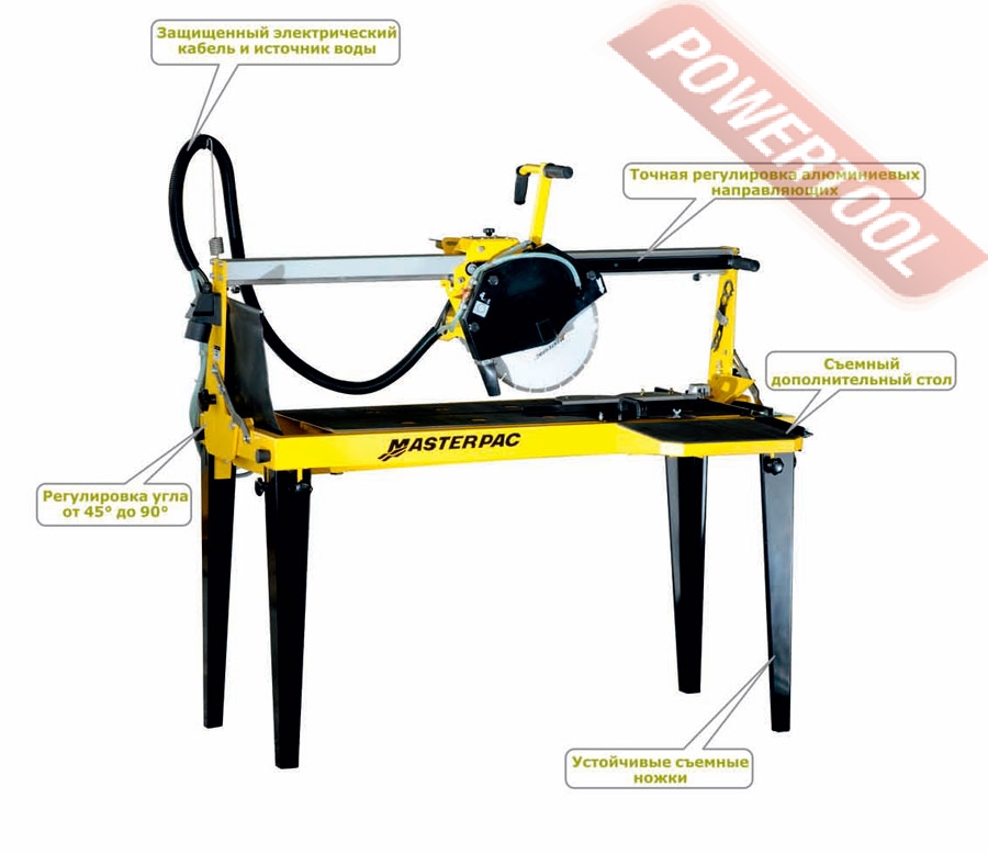 Камнерезный станок MASTERPAC PST100 относится к станкам с верхней направляющей, по которой перемещается электромотор с диском. Сверхжесткая конструкция направляющей и использование шарикоподшипников. Модель оптимально подходит для резки плитки на стройплощадке.