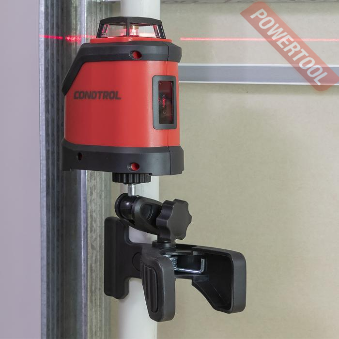 Крепление для лазерного нивелира CONDTROL Krab можно закрепить практически на любом предмете с обхватом в пределах 50 мм. Надежность установки прибора обеспечивает клипса с основанием ромбовидной формы. По сравнению с аналогами, оснащенными плоскими клипсами, универсальное крепление отличается более мощным зажимом (захватом). Благодаря усиленной пружине и противоскользящим элементам аксессуар выдерживает вес до 900 г. Вращающийся шарнир позволяет устанавливать прибор под любым углом, что особенно важно для осуществления разметки под наклоном. В некоторых случаях может даже заменить штатив. Этот аксессуар можно установить на трубе, бруске или профиле, предварительно определив необходимую для горизонтальной разметки высоту.