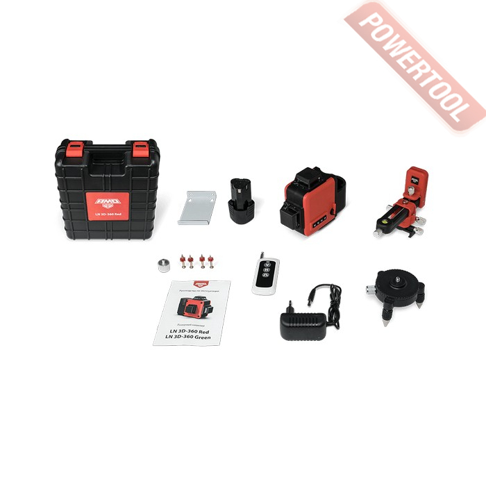 - 1. Лазерный уровень построитель плоскостей AMO 3D-360 Red.
