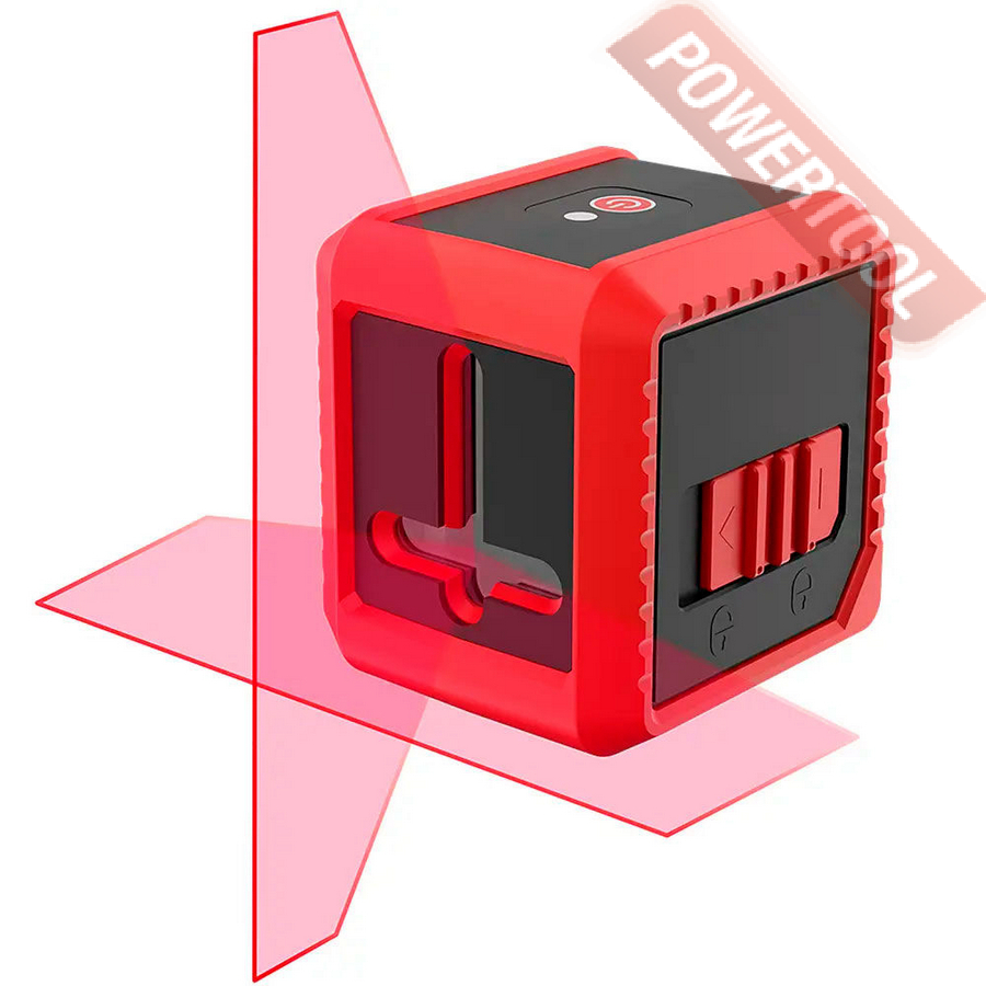 Лазерный уровень с красным лучом, проецирует 1 горизонтальную и 1 вертикальную линии, точность 0,5 мм/м, диапазон работы 10 м, автоматический компенсатор маятникового типа с замком и диапазоном работы 5 градусов, визуальная сигнализация при выходе за диапазон, возможность раздельного включения плоскостей, питание от 2 батарей АА 1,5 В, резьба под штатив 1/4 дюйма, класс защиты IP54, габариты 65х57х67 мм, вес 0,18 кг, в комплекте элементы питания, штатив.