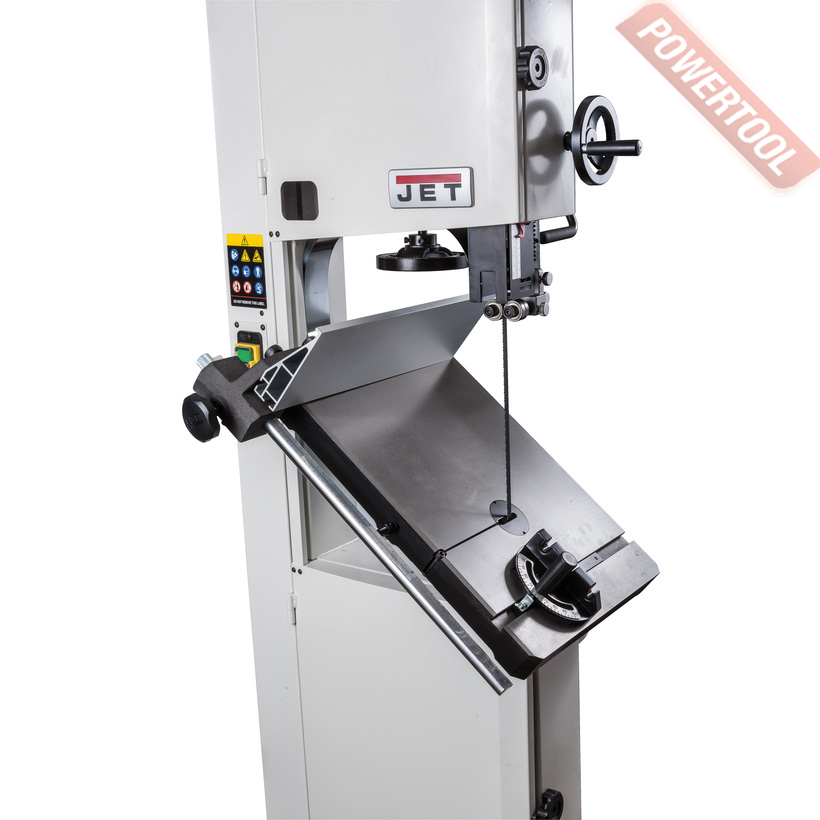 Ленточнопильный станок по дереву JET JWBS-15-T 380V - ленточная пила нового поколения, предназначенная для профессионального использования. Ее основное преимущество, на фоне аналогов прошлых поколений, - увеличенная высота распиловки. Этот параметр очень важен для тех, кому нужен универсальный станок, способный взять на себя функции делительного. К подобным работам приспособлен и параллельный упор: направляющий профиль можно установить вертикально на боковую грань так, чтобы надежно фиксировать плоские заготовки при их роспуске на тонкие пластины. В целом конструкция бокового упора очень хорошо проработана и соответствует самым строгим требованиям: профиль жесткий и прочный, закреплен на массивном чугунном кронштейне, который перемещается по цилиндрической направляющей. Предусмотрена грубая (вручную) и точная (микрометрическим винтом) установка.
