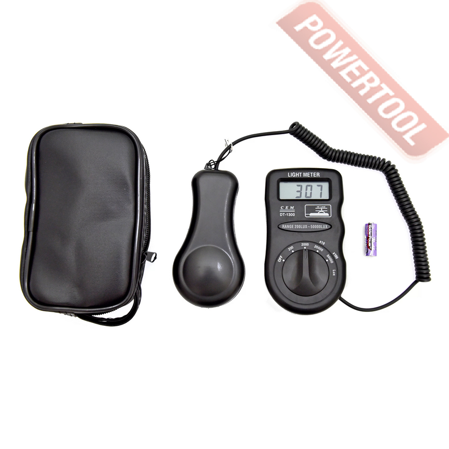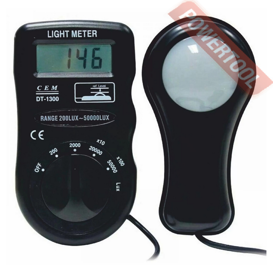 Люксметр CEM DT-1300 прост в эксплуатации, обеспечивает точное отображение уровня освещения в единицах FC или LUX в большом диапазоне. Для измерения уровня освещения переключите единицы измерения и установите диапазон измерения, после этого расположите фотодетектор в потоке света и на LCD дисплее появятся значения. После измерения спрячьте фотодетектор от источника света.