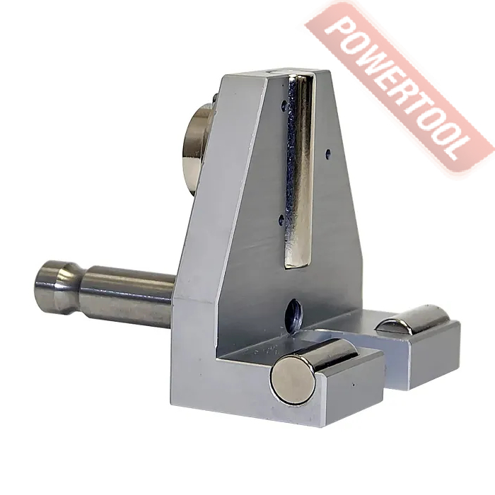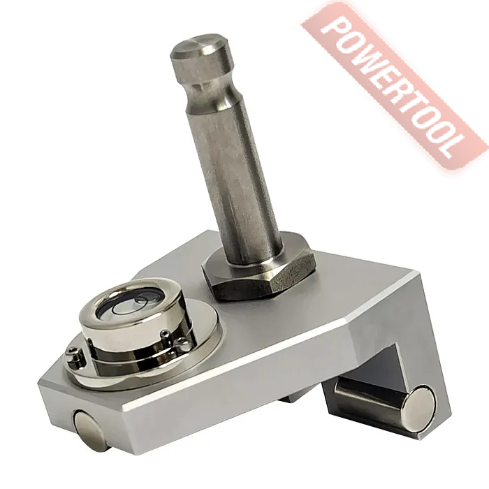 Корпус крепления RGK 103-GW-L изготовлен из алюминиевого сплава в виде L-образного профиля методом фрезерования. Для удобства выполнения разметки или для точной установки изделия над выбранной поперечной меткой на рельсе в боковой части предусмотрена соответствующая прорезь. Для фиксации устройства на стальных и чугунных поверхностях используются три неодимовых магнита цилиндрической формы, запрессованные в корпус, которые обладают высокой прочностью и обеспечивают надежность сцепления. Положение оси стального адаптера под фитинг для геодезического оборудования формата Leica совпадает с боковой поверхностью головки рельса, что исключает необходимость пересчета получаемых показаний. Для выравнивания отражателя на верхней плоскости адаптера размещен круглый пузырьковый уровень, поддерживающий возможность юстировки.