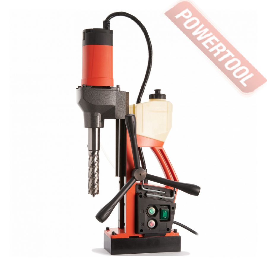 Магнитный сверлильный станок AT-S SU-36 рассчитан для сверлильных работ в металле с применением корончатых сверл длиной до 110 мм и диаметром до 36 мм со стандартным хвостовиком WELDON1 9 мм, а также спиральных сверл с цилиндрическим хвостовиком диаметром до 16 мм (трехкулачковый патрон поставляется в комплекте). Эргономичная форма станины с ребрами жесткости имеет очень удобный хват, новое поколение ручек передвижения привода, небольшой бачок для подвода охлаждения с воздушным клапаном для экономии СОЖ. Встроенная система охлаждения позволяет поступать СОЖ изнутри в место сверления и эффективно охлаждать корончатое сверло и металл. Панель управления станком с утопленными внутрь кнопками защищает их от случайного нажатия и повреждения, а также имеет отсек для хранения 2-х шестигранных ключей, которые всегда под рукой и не потеряются. Вертикальное положение шпинделя при необходимости можно поднять вверх до 280 мм от основания магнита для установки дополнительной оснастки или опустить ниже магнитного основания на 25 мм, за счет дополнительного крепления привода на направляющей двумя винтами под шестигранник. Рекомендуем данный станок к использованию для высотных работ, на небольших производствах, в специализированных цехах металлообработки.