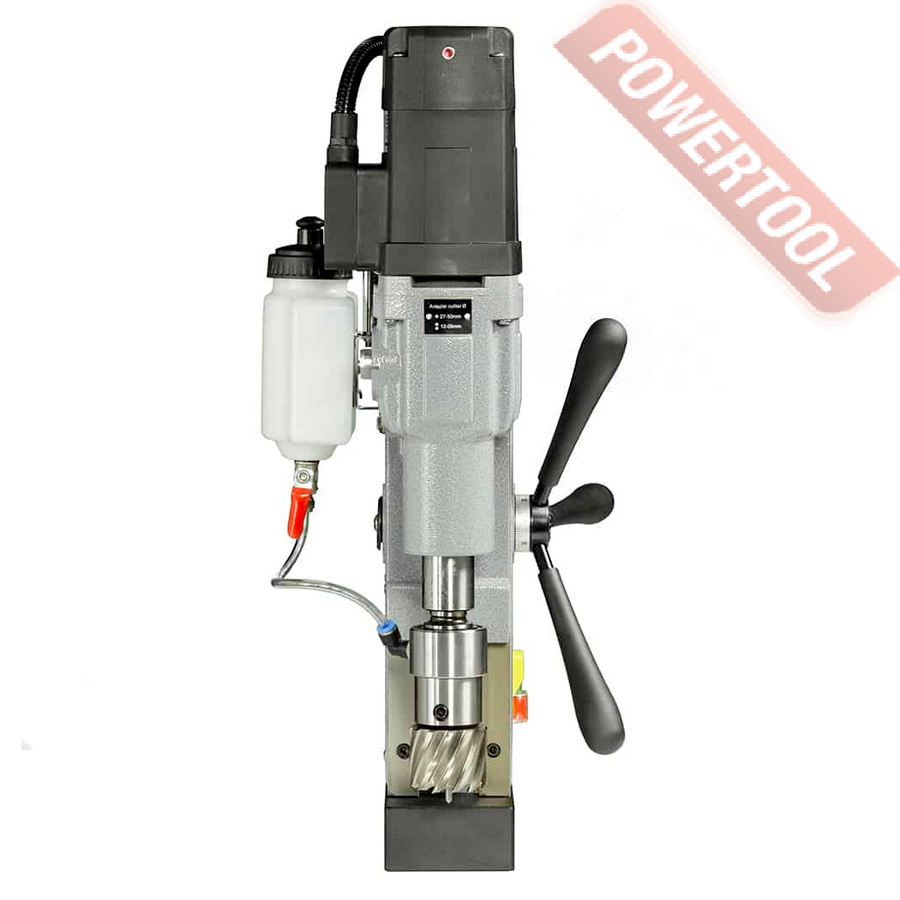 Магнитный сверлильный станок, 1250 Вт, 220 В, max диаметр корончатого сверла 50 мм, max диаметр спирального сверла 23 мм, конус шпинделя КМ 3, крепление корончатого сверла на Weldon 19, ход шпинделя 170 мм, частота вращения шпинделя 315/690 об/мин, 2 скорости, прижимная сила 16671 Н, размер магнитного основания ДхШ 160х80 мм, габариты ДхШхВ 320х200х615 мм, вес 11,2 кг, регулировка оборотов, система подачи СОЖ, в комплекте патрон КМ 3/Weldon 19, система СОЖ, кожух защиты зоны сверления, рукоятки 3 шт, страховочная цепь, набор шестигранных ключей 2.5, 3, 4, 5 мм, клин, кейс.