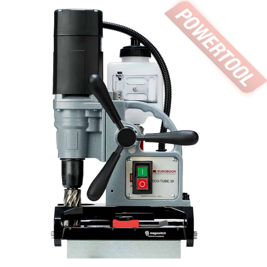 Магнитный сверлильный станок EUROBOOR TUBE.30S Plus подходит для сверления как на плоских, так и на изогнутых поверхностях. TUBE.30S+ обеспечивает невероятно прочное сцепление даже со сталью толщиной 3 мм. Этот магнитный сверлильный станок устанавливается на трубы диаметром от 76,2 мм. Магнит не требует электричества, что обеспечивает максимальную безопасность. Так же станок имеет редуктор в масляной ванне и инновационную электронику, которая обеспечивает высокий уровень безопасности, снижает риск повреждения станка, инструмента и заготовки и защищает пользователя в случае чрезмерных вибраций. Срок службы увеличивается, а затраты на обслуживание уменьшаются.
