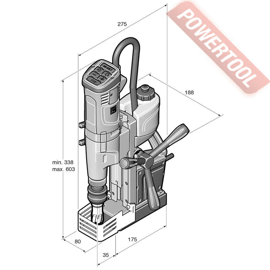 Магнитный сверлильный станок FEIN KBU 35 MQ - односкоростной универсальный магнитный станок для сверления корончатым сверлом по металлу диаметром до 35 мм и спиральным до 18 мм. Хвостовик QuickIN. Максимальный диаметр зенковки 31 мм. Нарезание резьбы до М14. Электронный тахометр гарантирует стабильную частоту вращения в правом и левом направлении. Встроенный бачок для СОЖ. Величина хода каретки 135 мм (полный диапазон хода 260 мм). Установка рукояти подачи сверла с любой стороны.
