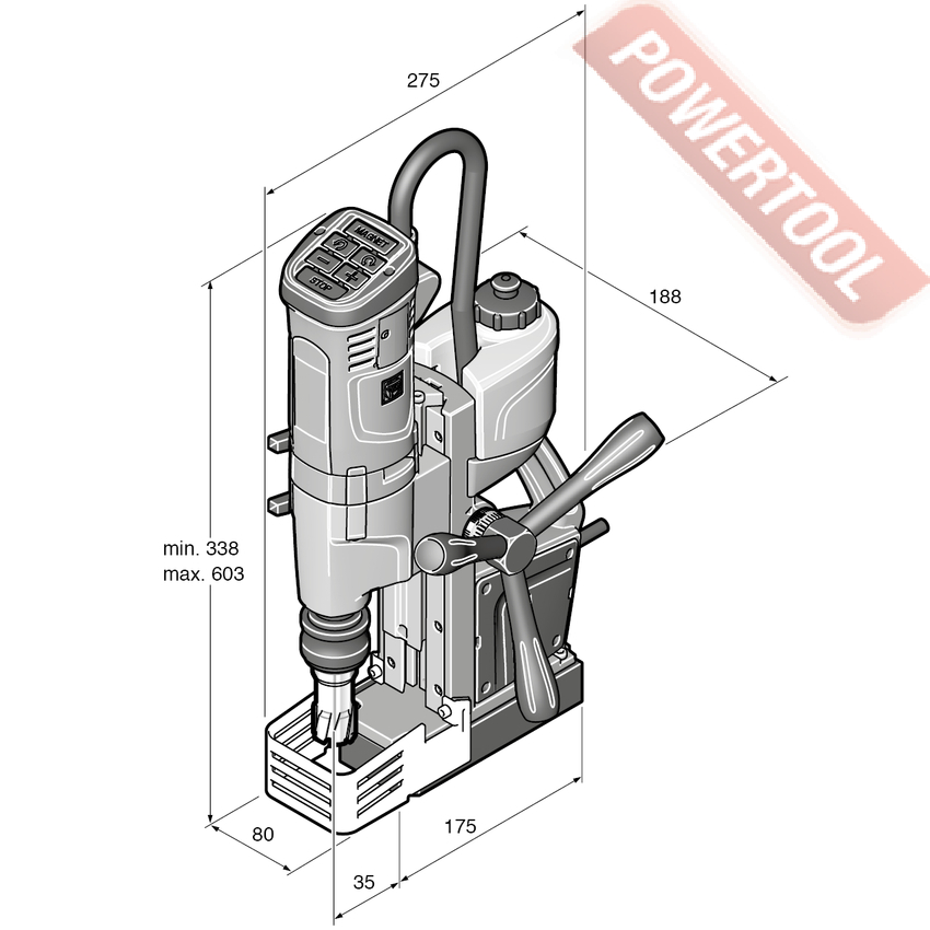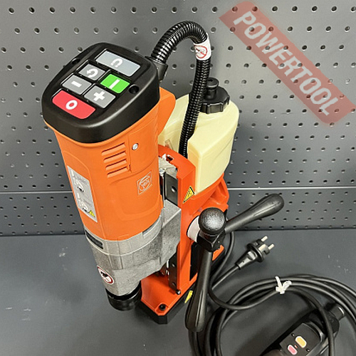Магнитный сверлильный станок FEIN KBU 35 QW - односкоростной магнитный станок для сверления корончатым сверлом по металлу диаметром до 35 мм и спиральным до 16 мм. Хвостовик 3/4 Weldon (19 мм). Максимальный диаметр зенковки 31 мм. Нарезание резьбы до М14. Величина хода каретки 135 мм (полный диапазон хода 260 мм). Встроенный бачок для СОЖ. Установка рукояти подачи сверла с любой стороны. Компактный и легкий станок. Оптимальное соотношение цены и качества.