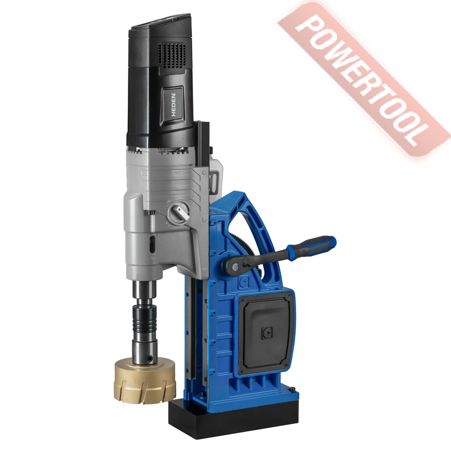 Магнитный сверлильный станок HEDEN DM-130V4 с самым мощным приводом и широким диапазоном регулировки частоты вращения. Выполняет сверление корончатыми сверлами диаметром до 130 мм и нарезание резьбы до М45.