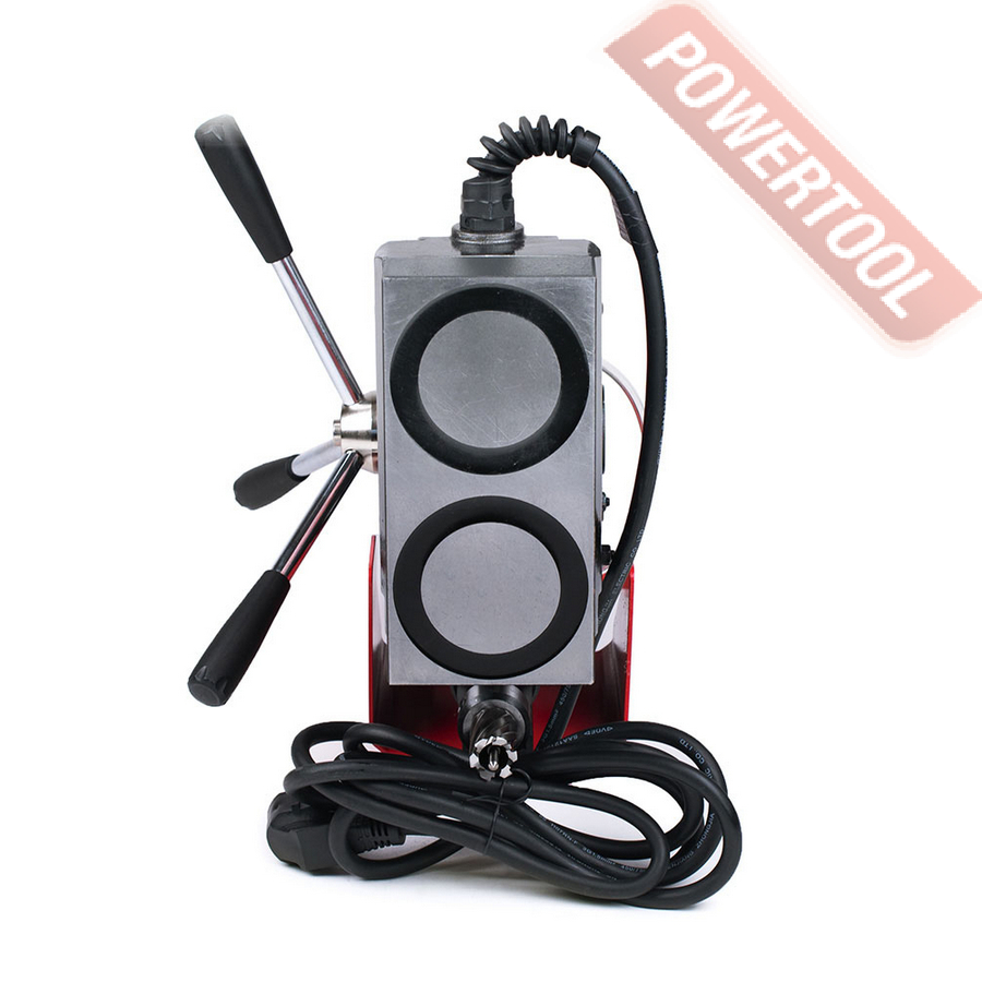 Магнитный сверлильный станок, 1500 Вт, 220 В, max диаметр корончатого сверла 50 мм, max диаметр спирального сверла 23 мм, конус шпинделя КМ 2, крепление корончатого сверла на Weldon 19, ход шпинделя 140 мм, max нарезаемая резьба M20, частота вращения шпинделя 100-265/200-500 об/мин, 2 скорости, прижимная сила 13500 Н, размер магнитного основания ДхШ 200х98 мм, габариты ДхШхВ 400х195х586 мм, вес 15,2 кг, реверс, плавная регулировка оборотов, система подачи СОЖ, в комплекте патрон КМ 2/Weldon 19, патрон КМ 2/B16, трехкулачковый патрон 1-13 мм, система охлаждения, страховочный ремень, рукоятка подачи 3 шт, набор ключей, комплект угольных щеток, клин, кейс.