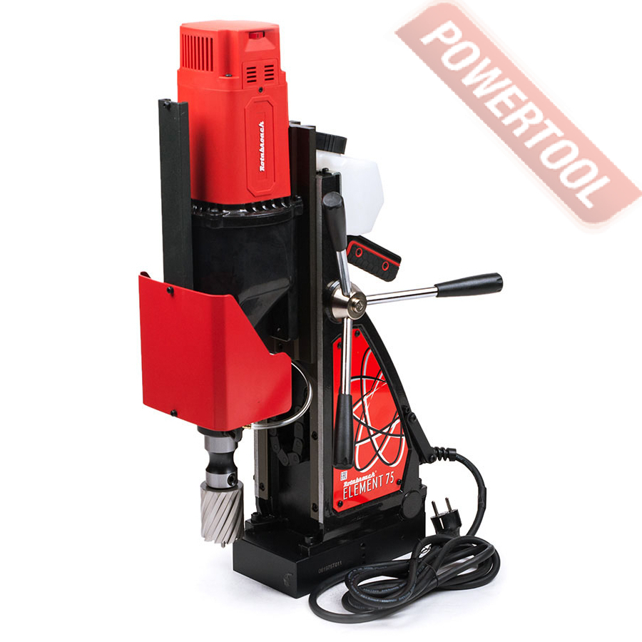 Магнитный сверлильный станок ROTABROACH Element 75 SB с поворотным основанием — мобильное металлообрабатывающее оборудование, предназначенное для обработки деталей сложной конфигурации и крупных размеров. Отличается от традиционных сверлильных станков наличием магнита (электромагнита), при помощи которого станок удерживается на обрабатываемом изделии.