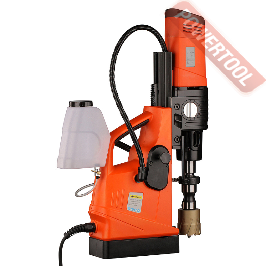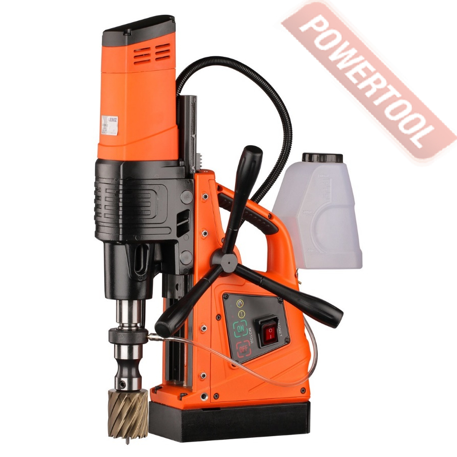 Магнитный сверлильный станок, 1500 Вт, 220 В, max диаметр корончатого сверла 50 мм, max диаметр спирального сверла 23 мм, конус шпинделя КМ 3, крепление корончатого сверла на Weldon 19, ход шпинделя 170 мм, частота вращения шпинделя 250/450 об/мин, 2 скорости, прижимная сила 15000 Н, размер магнитного основания ДхШ 210х100 мм, вес 17 кг, регулировка оборотов, система подачи СОЖ, в комплекте патрон КМ 3/Weldon 19, система охлаждения, страховочный ремень, рукоятка подачи 3 шт, набор шестигранников 2.5, 5, 6 мм, клин, кейс.