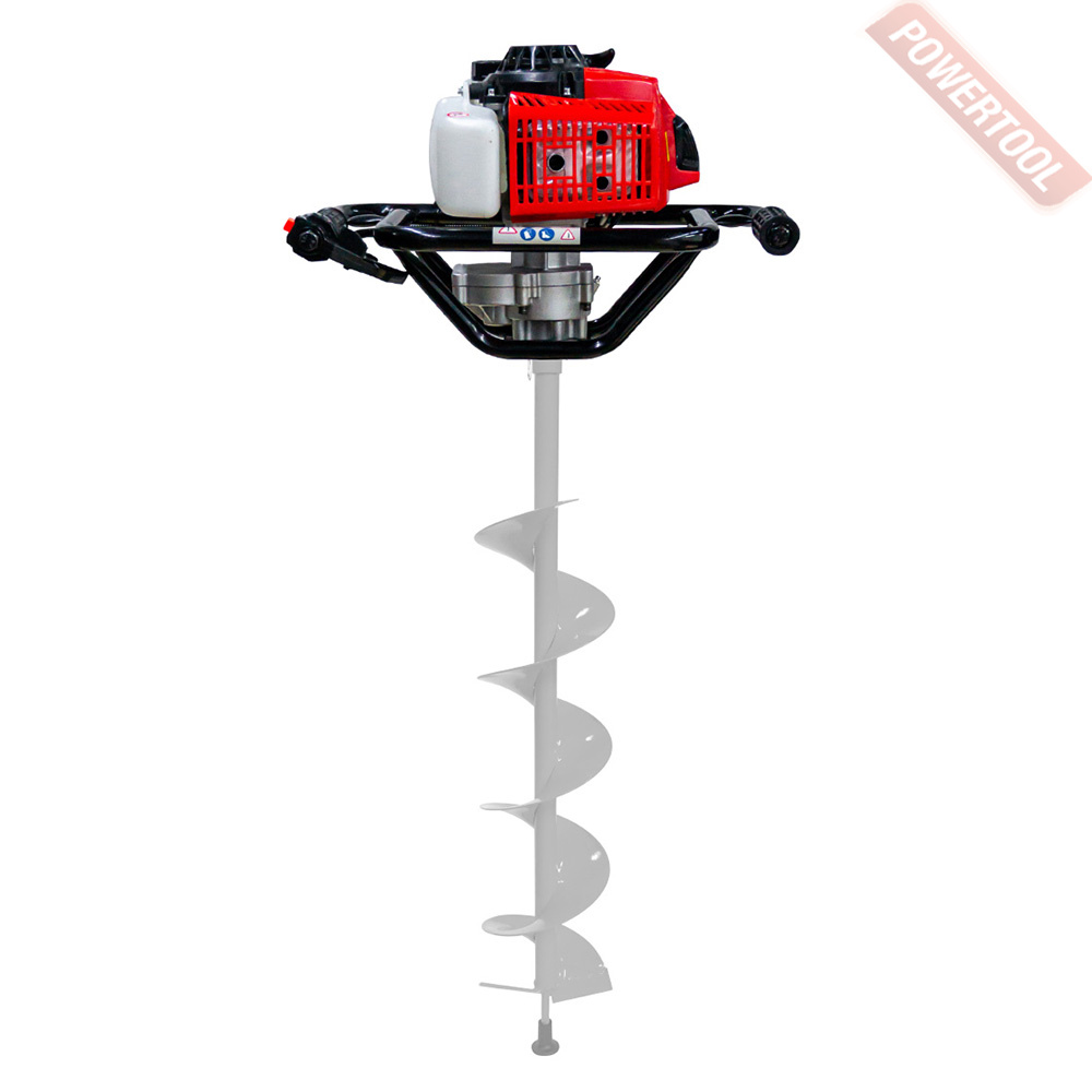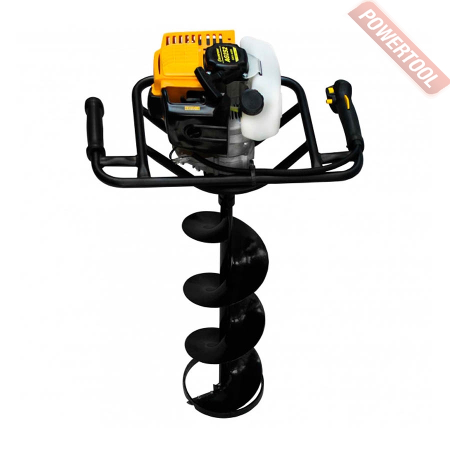 - Рабочей частью агрегата является винтообразный бур или шнек, который приводится во вращение с помощью двухтактного бензинового двигателя.