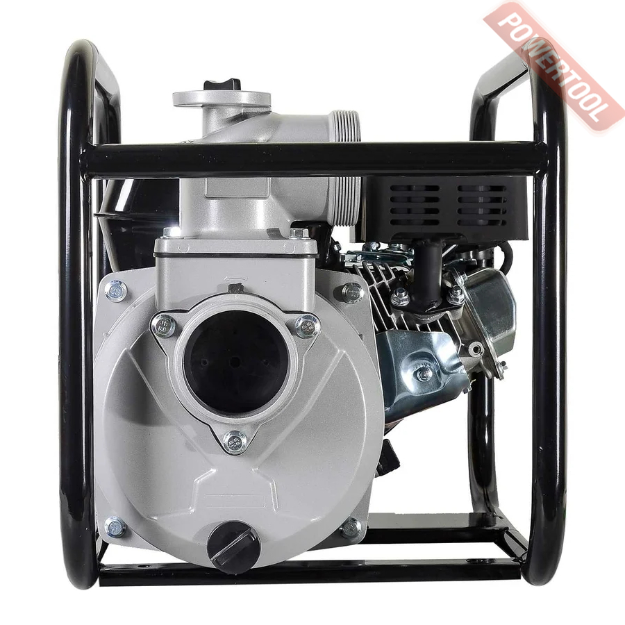 Мотопомпа бензиновая для чистой воды, max производительность 900 л/мин, max уровень подъема 30 м, max глубина всасывания 8 м, диаметр отверстий вход / выход G4 или 80 мм, max допустимый размер частиц 5 мм, 4-х тактный бензиновый двигатель объемом 196 куб.см мощностью 7 л.с., ручной старт, топливный бак 3,6 л, емкость картера 0,6 л, размер (ДхШхВ) 450x460x590 мм, вес 25 кг.