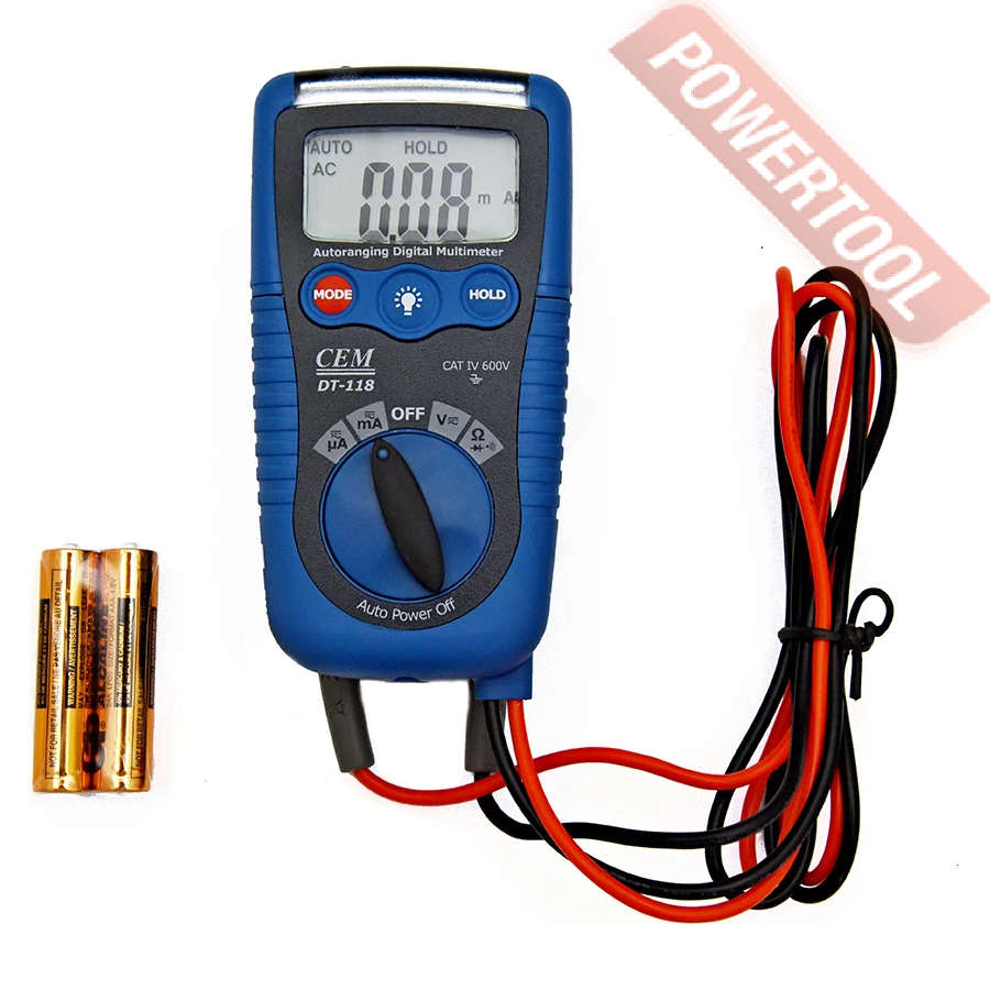 Мультиметр цифровой автоматический CEM DT-118 - это комбинированный электроизмерительный прибор, который используется для простого и удобного измерений постоянного и переменного напряжения, силы тока, сопротивления, емкости, частоты и рабочего цикла в электрических цепях. Используя в работе мультиметр цифровой DT-118, то вы сможете быстро и максимально точно определить всем необходимые параметры без привлечения дополнительного оборудования.