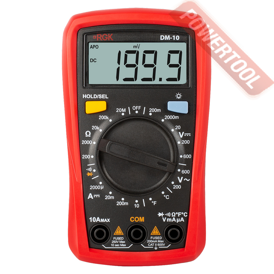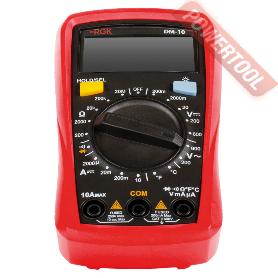 Мультиметр цифровой с поверкой RGK DM-10 – это прибор для измерения различных параметров электросетей, диагностики оборудования, проверки диодов на работоспособность и прозвонки цепей. При подключении комплектной или любой другой термопары типа “К” эта модель может проводить замеры температуры вплоть до 600 градусов С. За счет небольших размеров и легкости освоения основных функций, мультиметр станет отличным выбором для домашнего использования.
