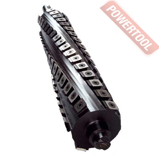 Сегментированный строгальный вал шириной 200 мм для чистовой обработки древесины, на котором установлено множество 2-х или 4-х сторонних твердосплавных лезвий, лезвия расположены спирально и входят в заготовку последовательно, что снижает ударные нагрузки, шум и вибрацию, реже образуются вырывы древесины на проблемных участках, меньше вероятность скалывания сучков, нет волны характерной для обычных станков, стружка отходит мелкая, благодаря чему улучшается работа системы аспирации, предназначен для установки на фуговальный станок Jet 60A, Powermatic 60C.