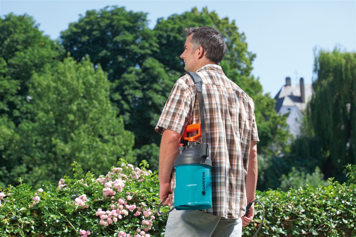 Опрыскиватель помповый ручной GARDENA 000867-20.000.00 - высококачественный опрыскиватель GARDENA Comfort представляет собой идеальный инструмент для внесения средств защиты и удобрений, а также для направленного мягкого полива, например, рассады. Наконечник позволяет полностью регулировать напор: от сильной струи до мелкодисперсного тумана. Практичная широкая горловина облегчает залив и смешивание жидкостей. Опрыскиватель снабжен надежным, сохраняющим форму корпусом, выдерживающим высокое давление, с удобным точным индикатором уровня. Опоры для ног облегчают накачку и гарантируют устойчивость на неровных поверхностях. Опрыскиватель рассчитан на давление 3 бар (максимум) и снабжен предохранительным клапаном для быстрого сброса давления в целях обеспечения безопасной эксплуатации. Специальный наконечник, расположенный под углом, позволяет опрыскивать листья с обратной стороны. Плечевой ремень с мягкой вставкой гарантирует удобство эксплуатации и транспортировки опрыскивателя. Также опрыскиватель снабжен эргономичной D-образной ручкой для удобной эксплуатации и практичным пусковым механизмом с фиксатором положения.