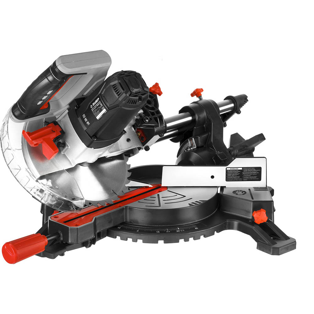 - Щеточный электродвигатель. Двигатель торцовочный пилы работает от бытовой сети 230 В. Чем мощнее пила, тем выше ее производительность, то есть количество выполненной работы за единицу времени. Но слишком мощный инструмент, как правило, обладает большими габаритами, что усложняет работу.