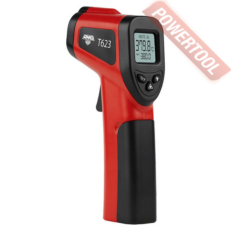 Пирометр AMO T623 представляет собой мобильный прибор технического класса с рабочим диапазоном от –50 до +380 градусов С и разрешением в 0,1 градуса С, предназначенный для дистанционного определения температуры поверхностей выбранных целей – узлов и компонентов механического и электросилового оборудования, конструкционных элементов сооружений и систем различного типа. Результаты измерений могут отображаться в градусах Цельсия или Фаренгейта, с возможностью быстрого переключения показаний путем нажатия соответствующей кнопки. Изделие обладает показателем визирования 1:12 и подходит для оперативной диагностики целевых объектов и дистанционного контроля соблюдения технологических процессов в промышленных отраслях, на объектах ЖКХ, а также для решения бытовых задач.