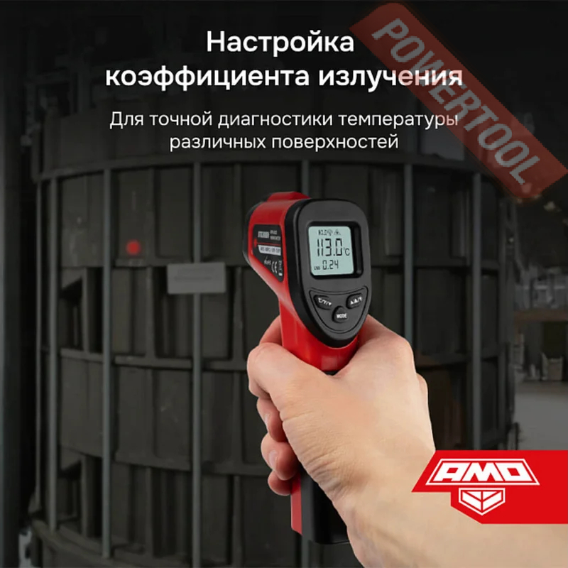 Нажатие курка на пистолетной рукоятке AMO T630 активирует режим непрерывных измерений SCAN. После его отпускания срабатывает функция HOLD. Она фиксирует последний цифровой показатель на дисплее для упрощения считывания результатов измерений.